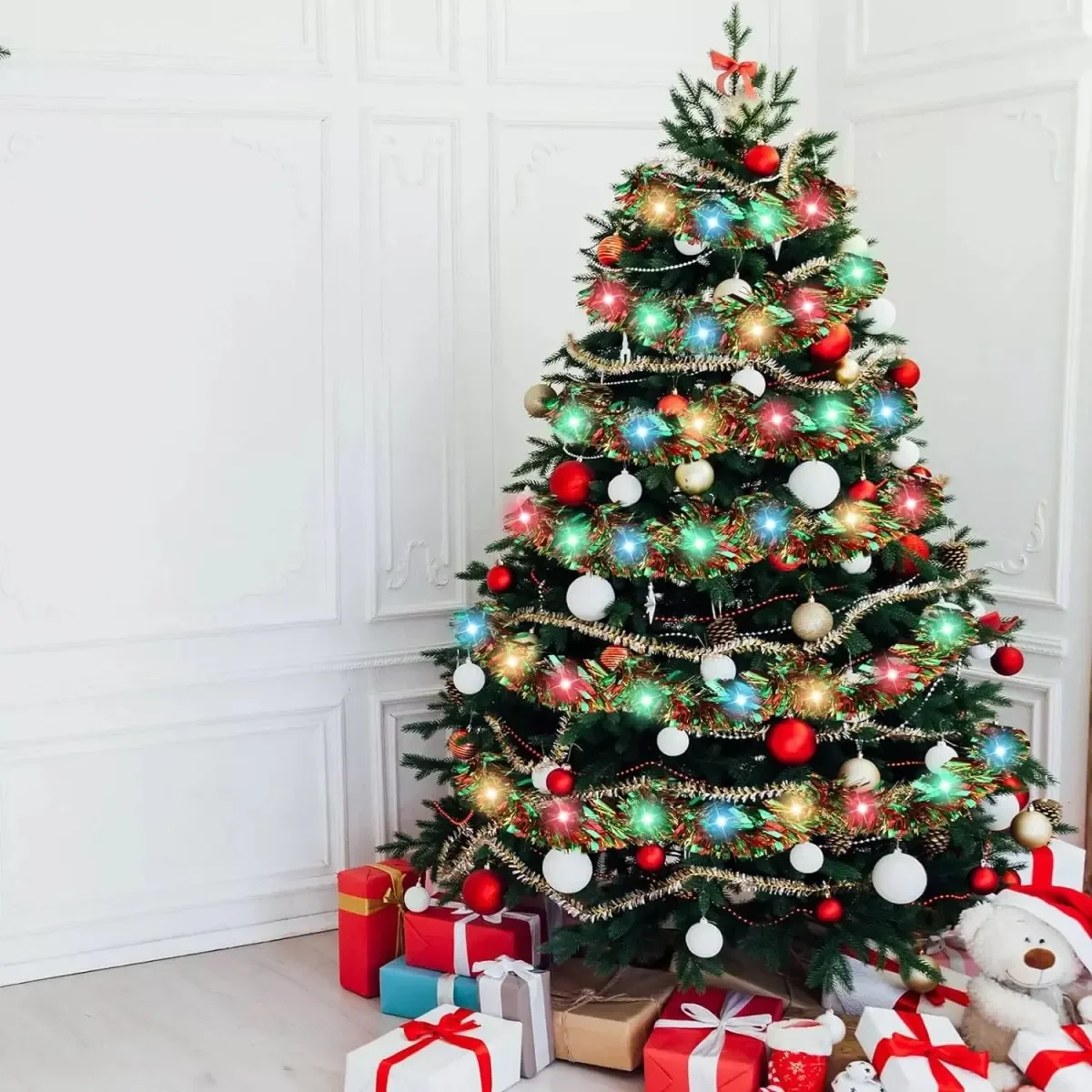 LED Metallic Shimmer Tinsel Garland: Xmas Party Indoor Outdoor Decor