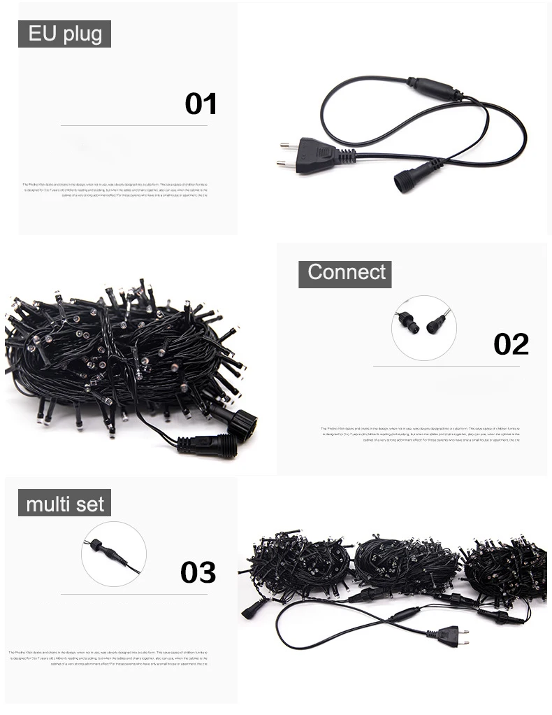 20M Black line Outdoor LED String Lights Garland 220V/110V Waterproof Fairy Light Christmas Wedding Party Holiday Garden Decor