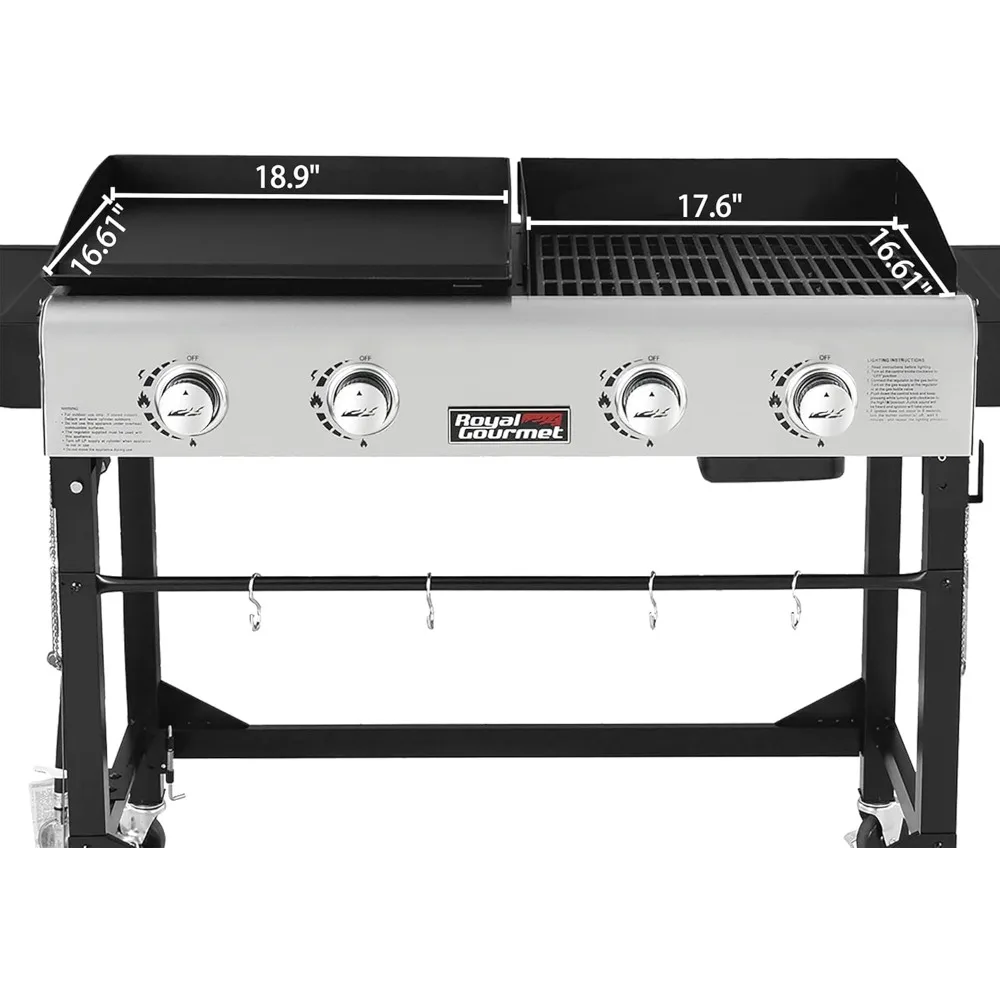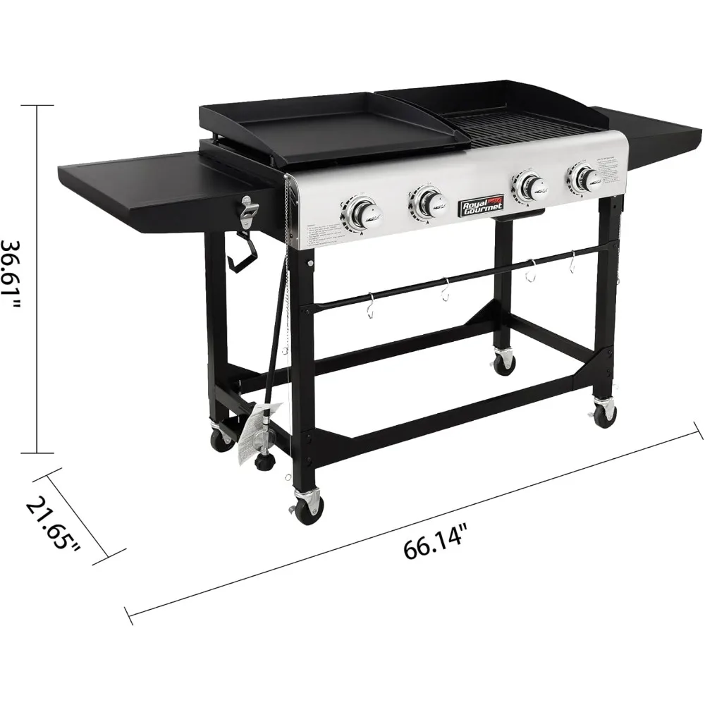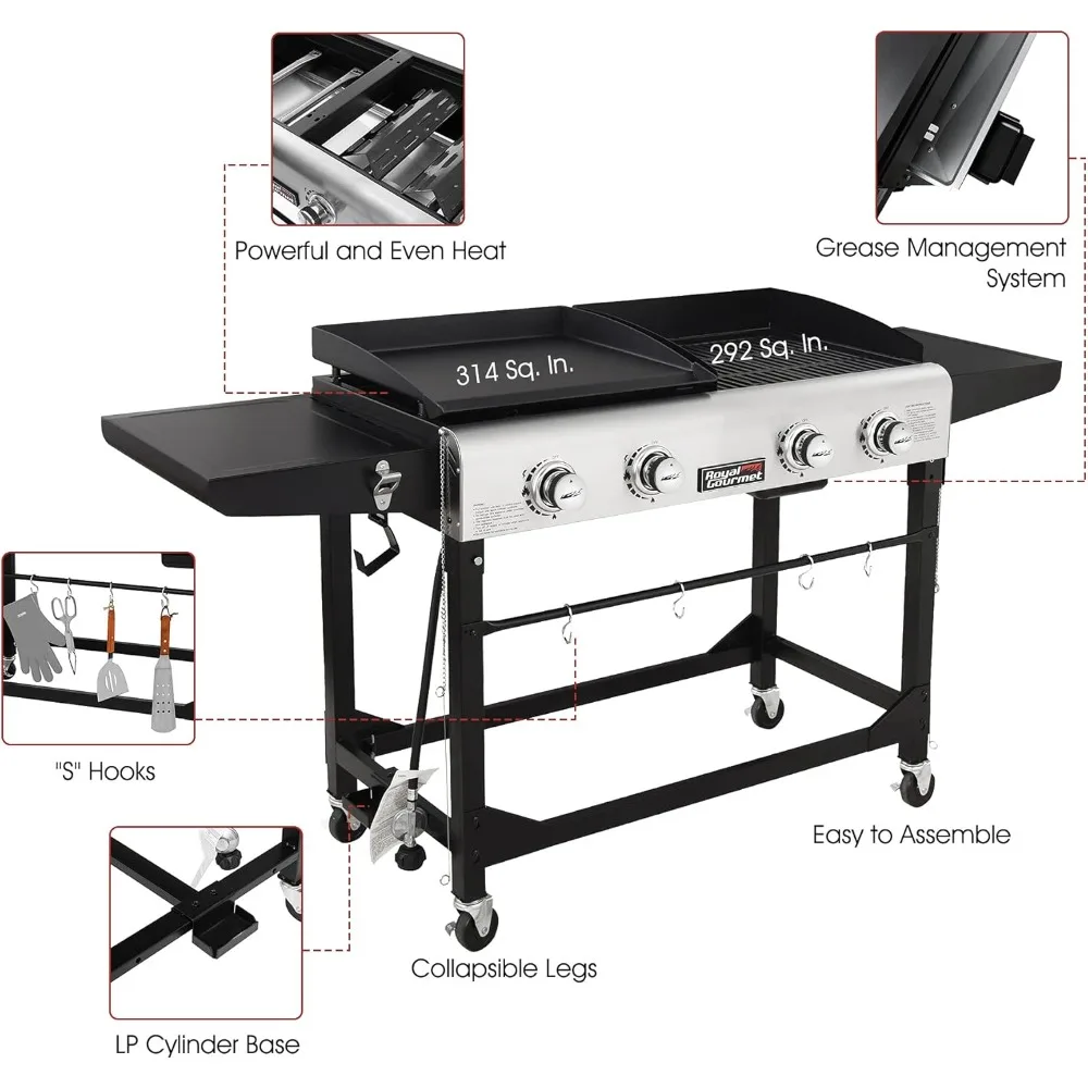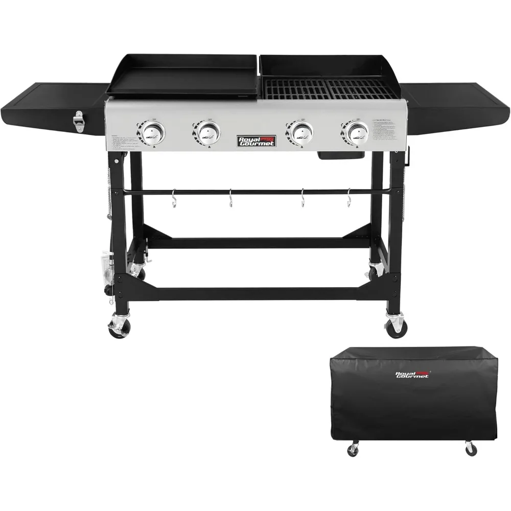 4-Burner Propane Gas Grill and Griddle Combo with Cover, Griddle Grill Combo with 48,000 BTUs Output for Outdoor Cooking