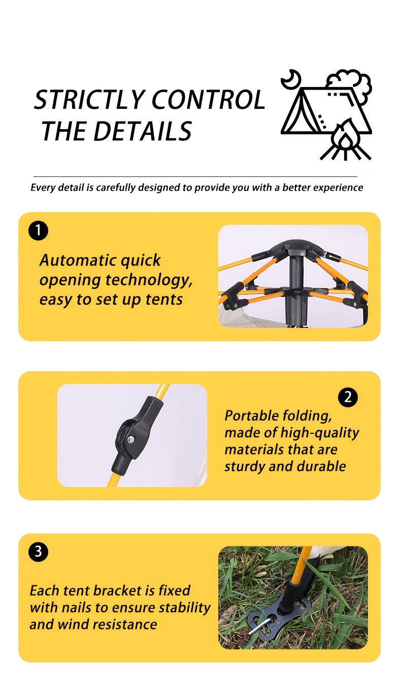 Automatic Quick-Open Beach Outdoor Tent, Multifunctional Portable Sunproof and Waterproof, Essential for Hiking, Camping, Picnics, All-Season Square Camp Tent, Suitable for Independence Day Music Festivals and Outdoor Activit
