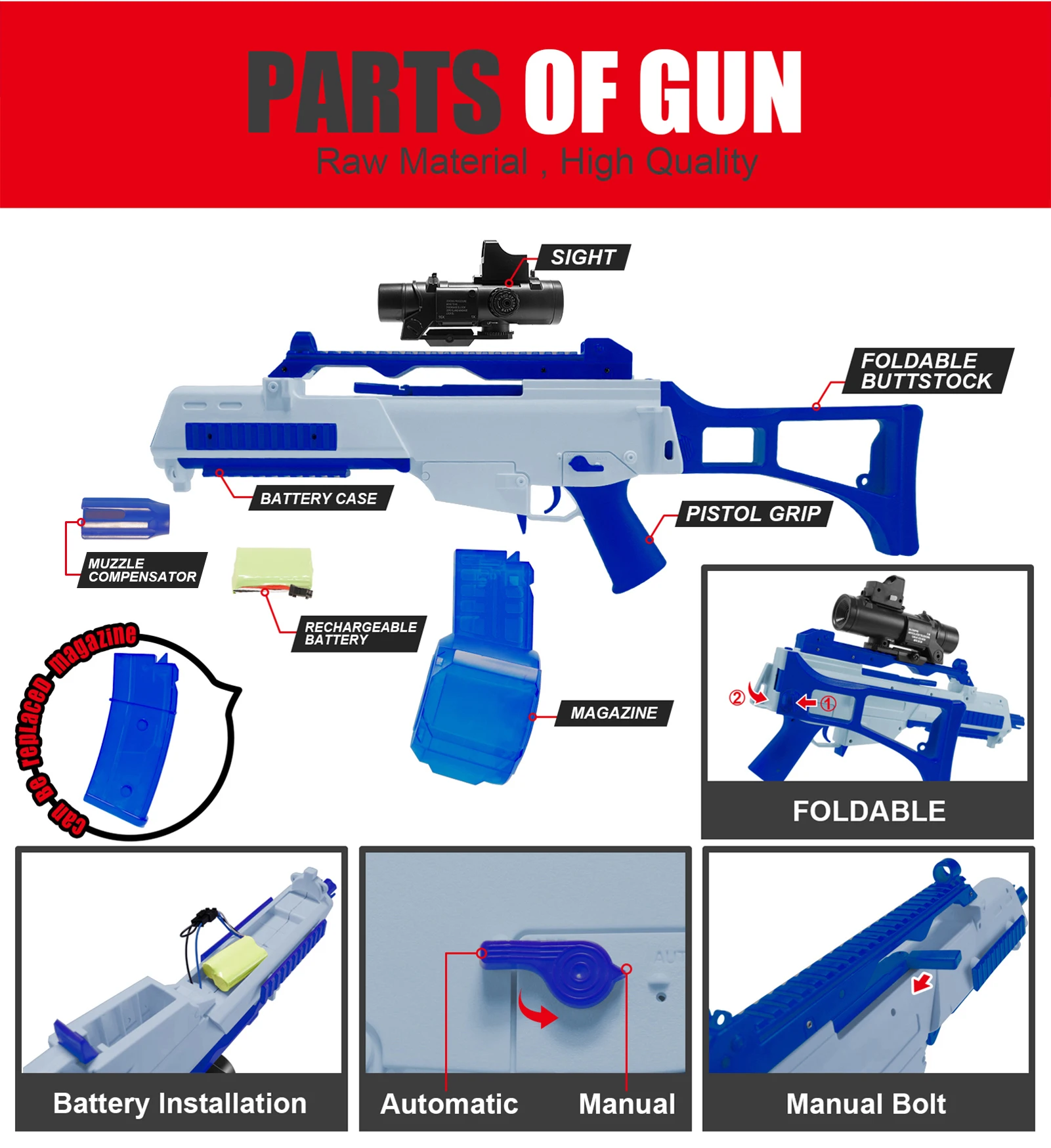 High Speed G36C Electric Gel Balls Blaster, Automatic & Manual Dual Shooting Modes Water Bullets Gun Toys, Holidays Gifts
