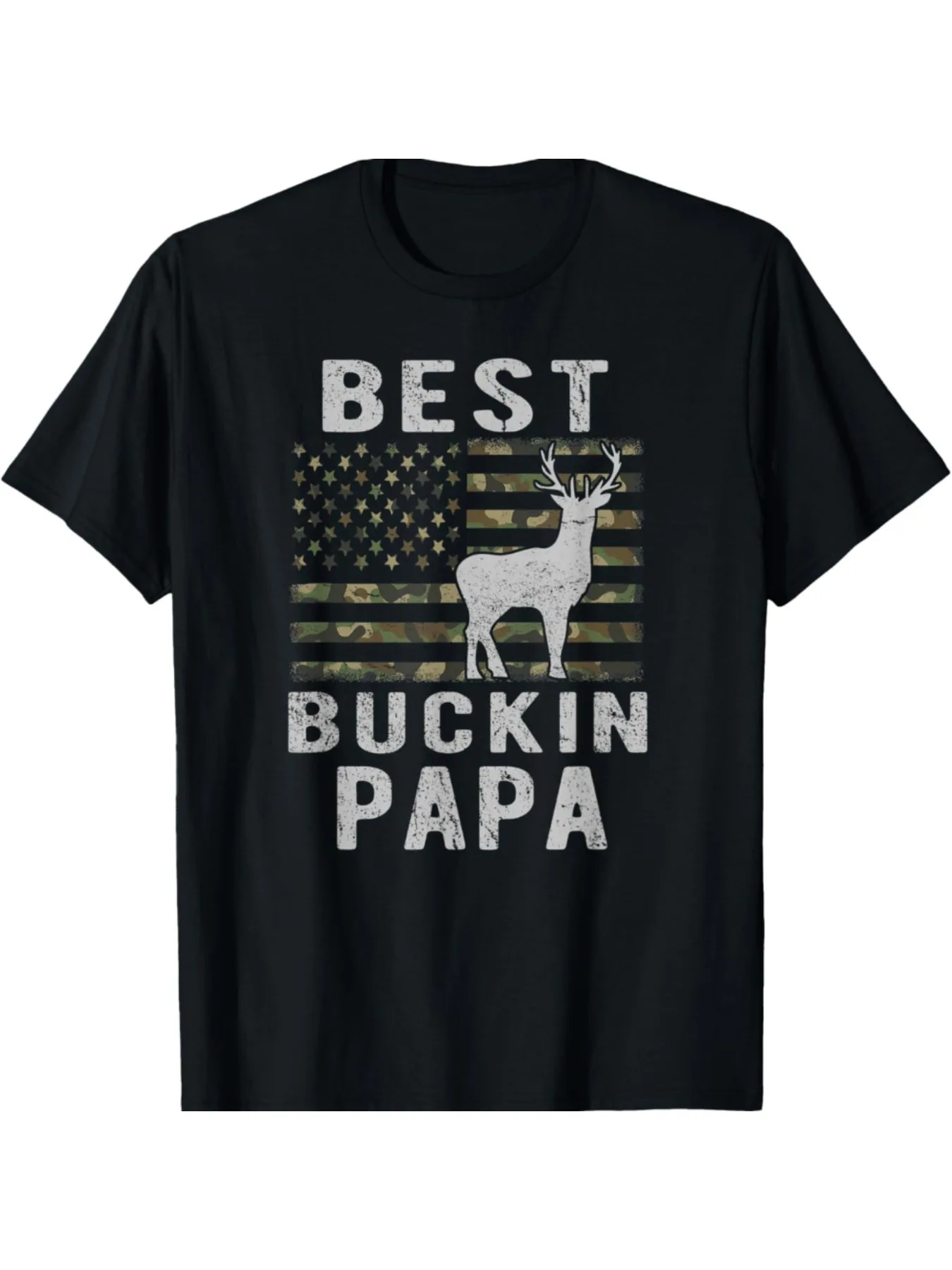 Men's Patriotic Deer Hunting T-shirt - Regular Edition, Casual Style, Machine Washable, Perfect for Spring and Autumn Seasons