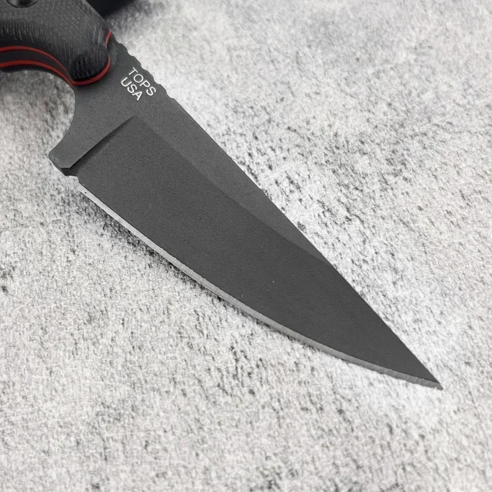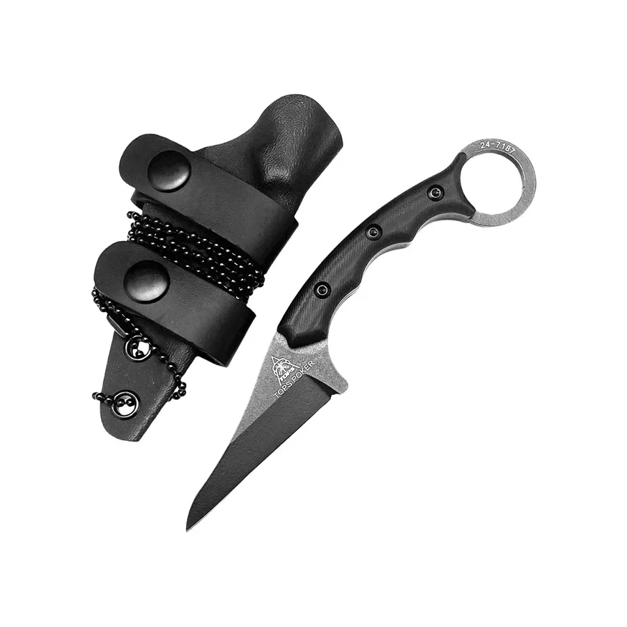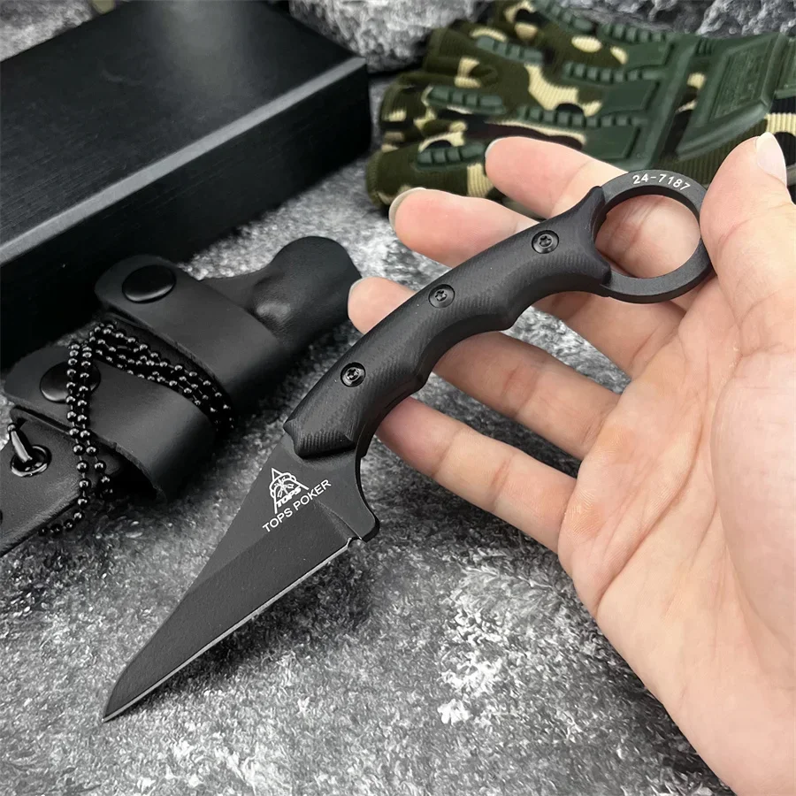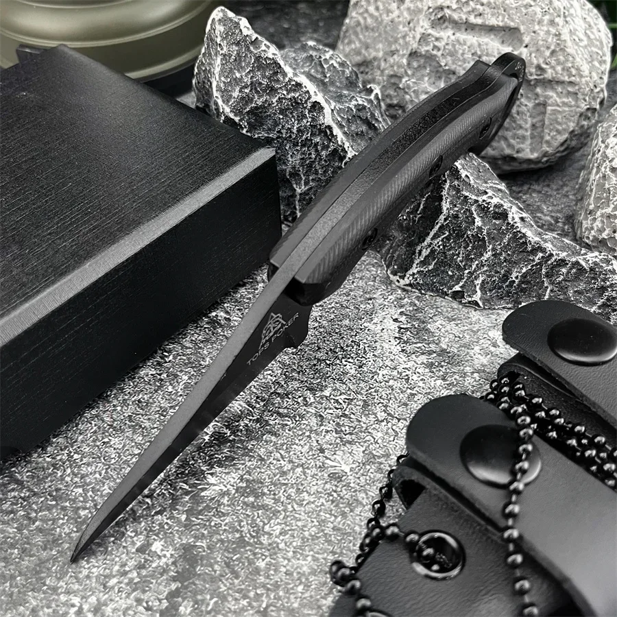 New Styles TOPS with Sheath Outdoor Straight Knife G10 Handle 8Cr13Mov Blade Camping Hunting Self-defense Multi-fuctional Tools