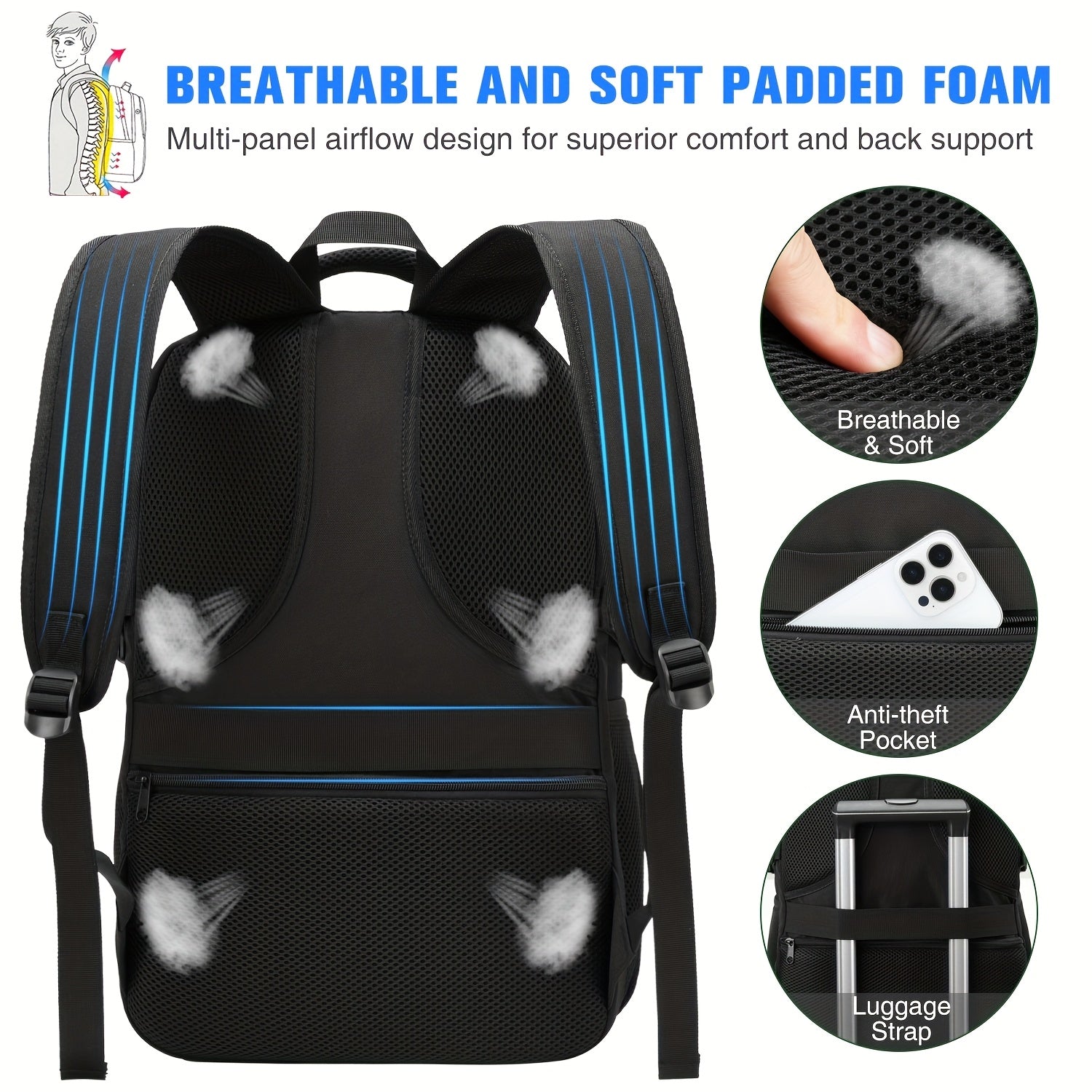 School Backpack, Laptop Backpack Bookbag For High School College Students Work Office Business